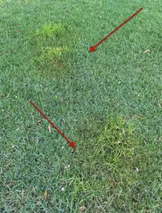 Poa Trivialis (Rough Bluegrass), on the other hand, is a perennial cool season grass. It is more noticeable in the late winter/early spring and rarely produces a seedhead when mowed. Its tolerance for shade makes it particularly aggressive in shady lawns. The light green grass creates thick mats of stems, overpowering desirable grasses in the lawn. Because of the color contrast and rapid growth, it is aesthetically unappealing. With the summer heat the Poa Trivialis dies back, leaving bare soil. The timing and appearance of the die back can look like a fungal infection and is often mistakenly treated as such. Poa Trivialis may appear to be gone, but the plant’s stems survive underground waiting for cool weather to return and will pop up again in the fall.